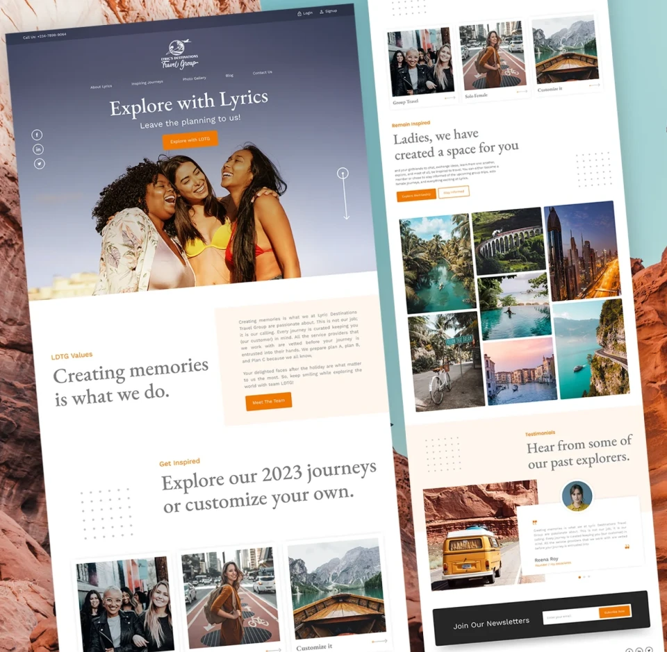 Lyric Destinations Travel Group (LDTG) is a premier travel organization offering customized and luxury travel experiences, including wellness retreats and curated group journeys. While the brand delivered high end travel services, its existing website lacked the clarity, structure, and usability needed to match its positioning. Our role was to redesign and develop the website to create a seamless digital experience that aligns with the brand’s luxury appeal while making it easier for users to explore travel options and plan their journeys.